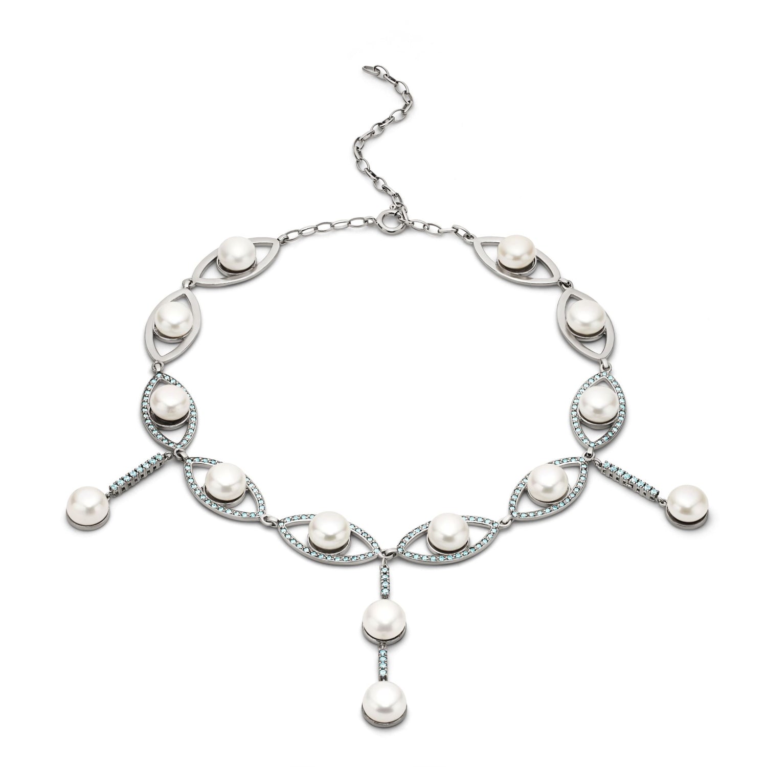 Pendant in 925 sterling silver Deco design with sapphire and Persian blue hot enamel