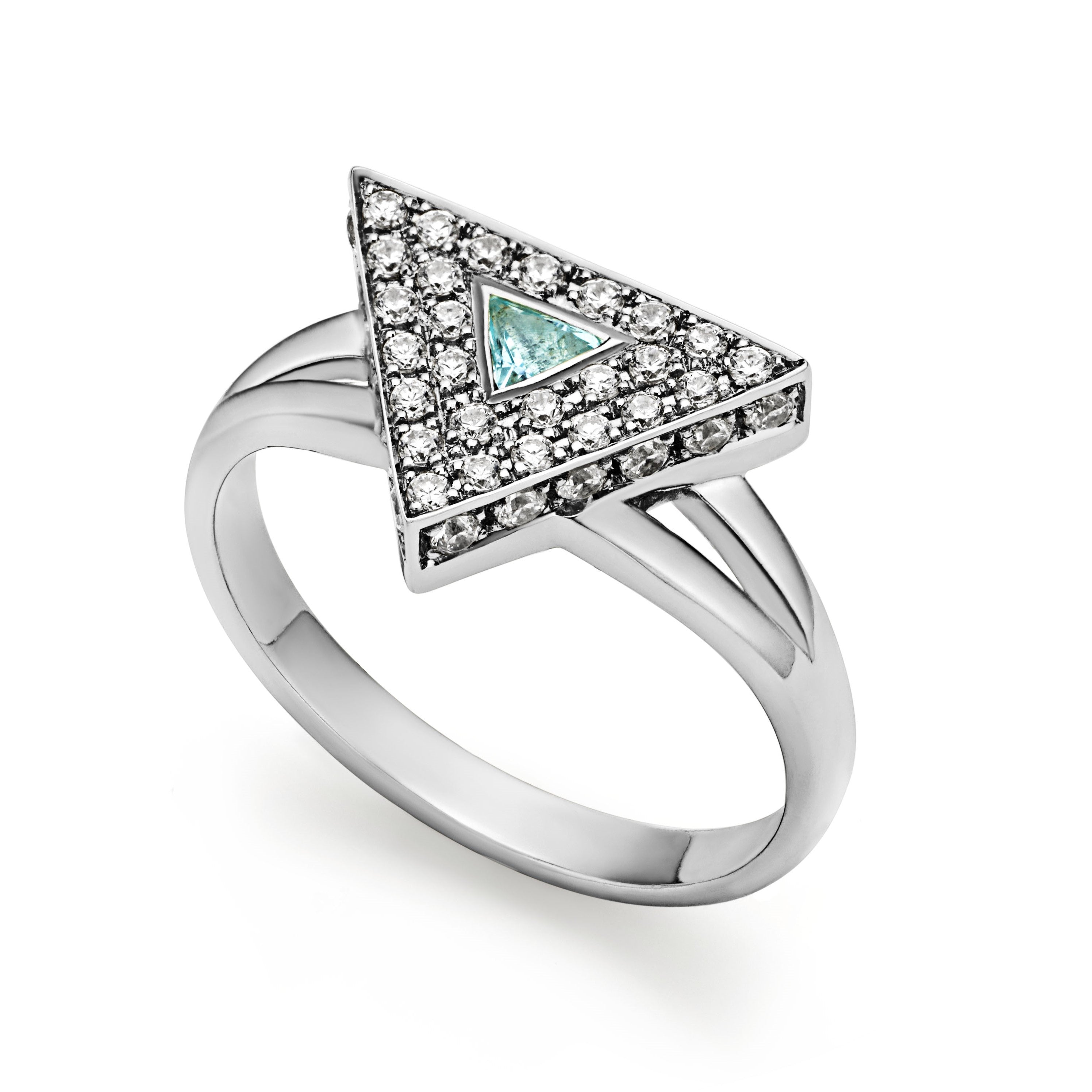 Ring 925 sterling silver pyramid design with Persian blue hot enamels