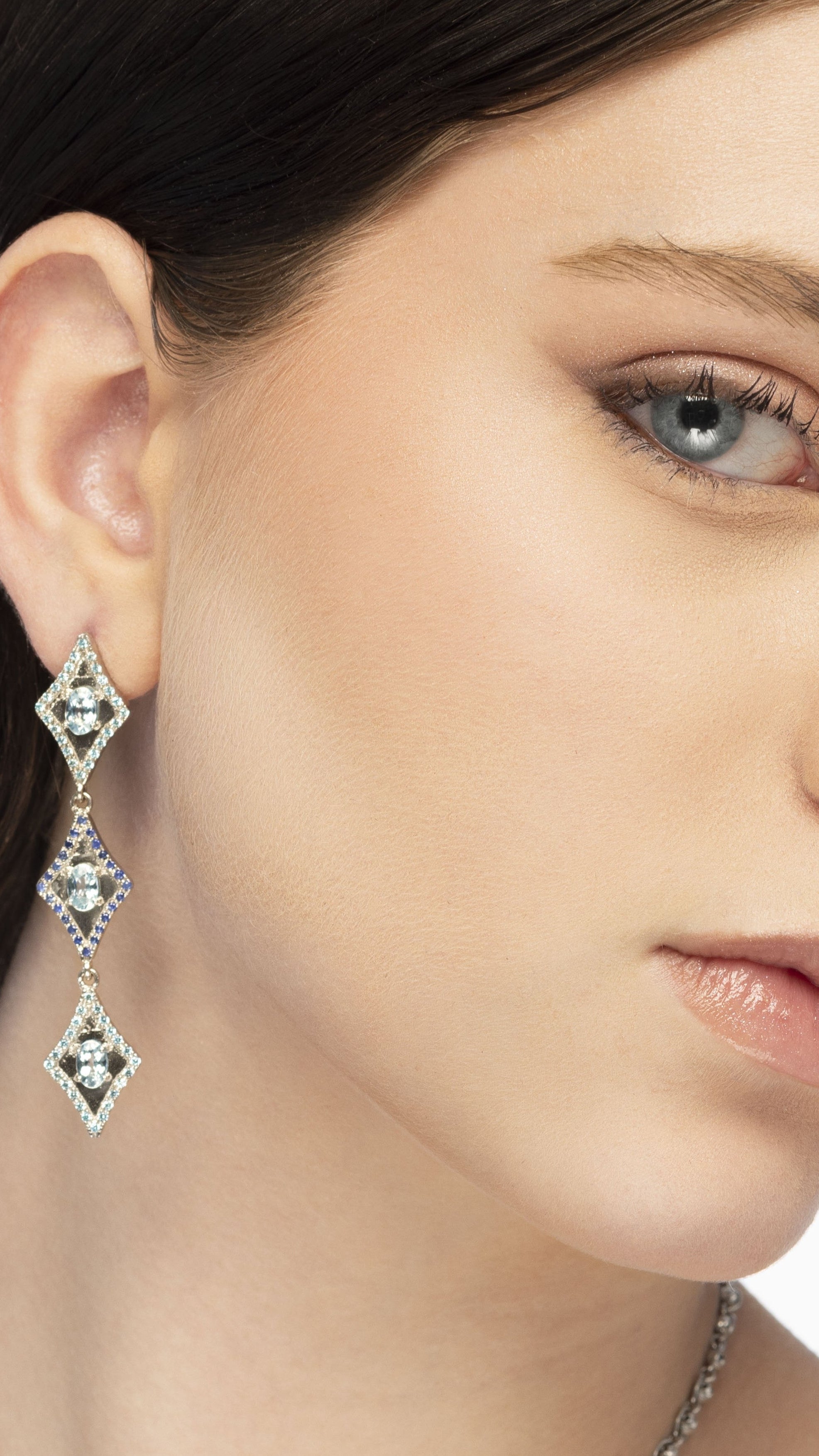 Earrings 925 Sterling Silver with raw sapphires and enamels